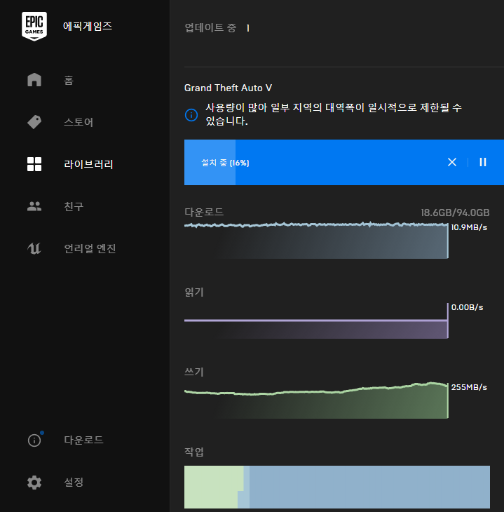 1. 먼저, 에픽게임즈 런처에서 다운로드를 일시정지 합니다.
