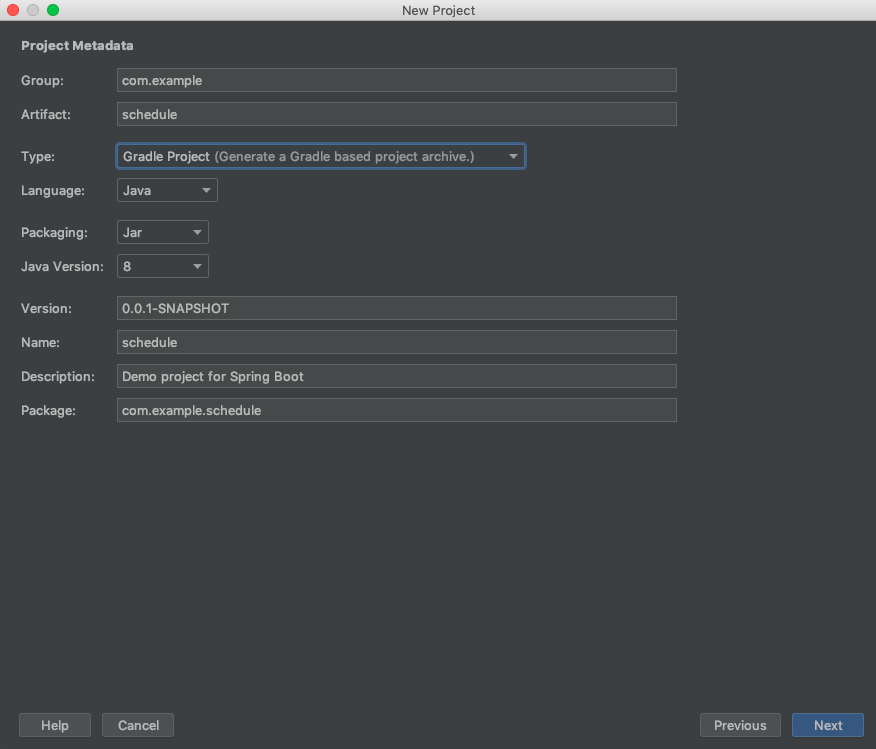 3. 적절한 Group, Artifact 를 입력하고, Type을 Gradle Project 로 선택