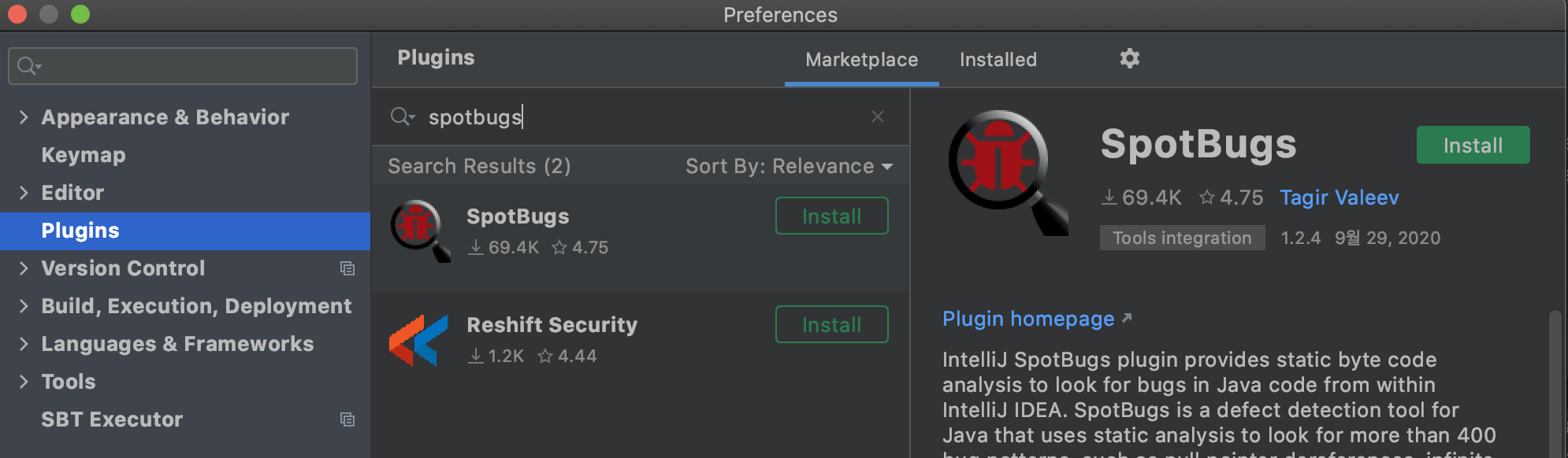 Gradle 5.6 버전 이후부터, FindBugs plugin이 삭제가 되어, 대신에 SpotBugs plugin을 사용할 수 있습니다.