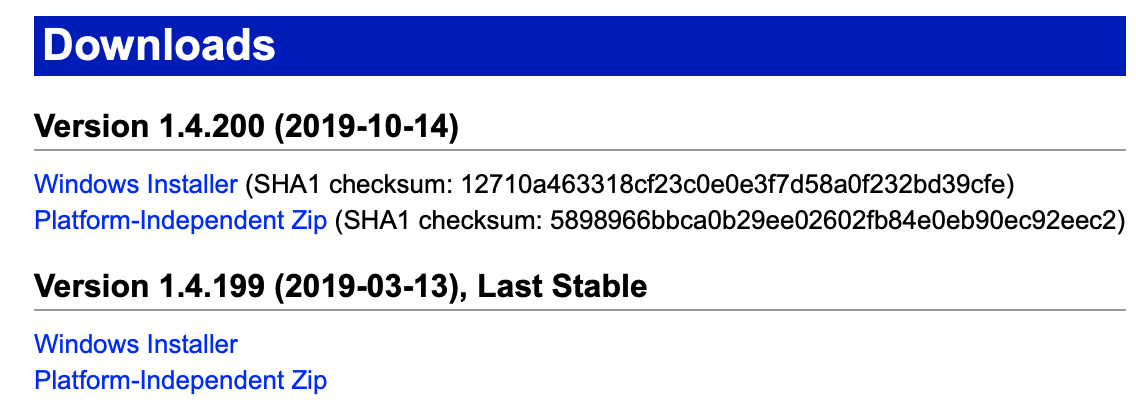 참고로, 현재 최신 버전은 1.4.200 이고, 최신 안전화 버전은 1.4.199 입니다.
