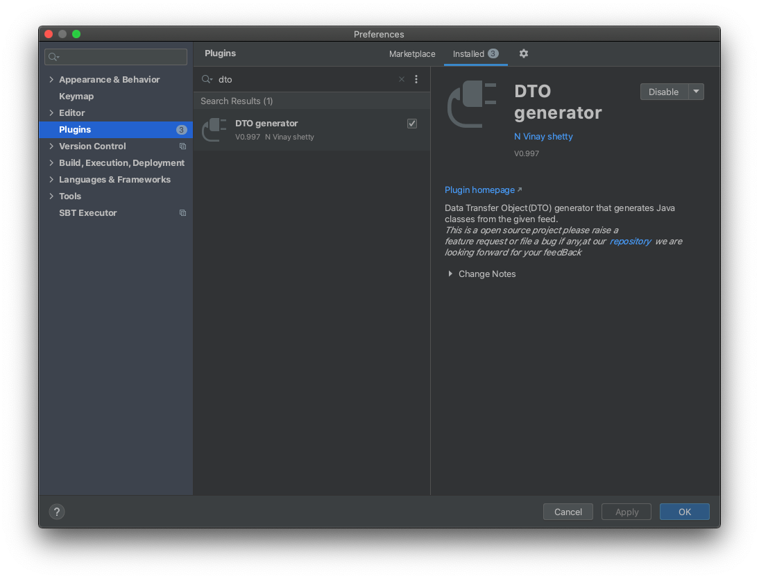 먼저, DTO generator라는 플러그인을 설치해줍니다.