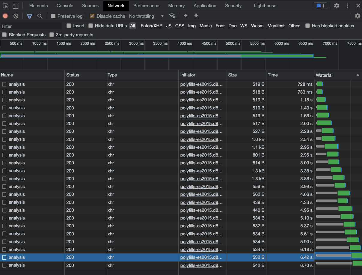 앞선 요청들이 처리되고 난 뒤에야 이후의 요청들이 순차적으로 발송되는 것을 확인할 수 있습니다.
