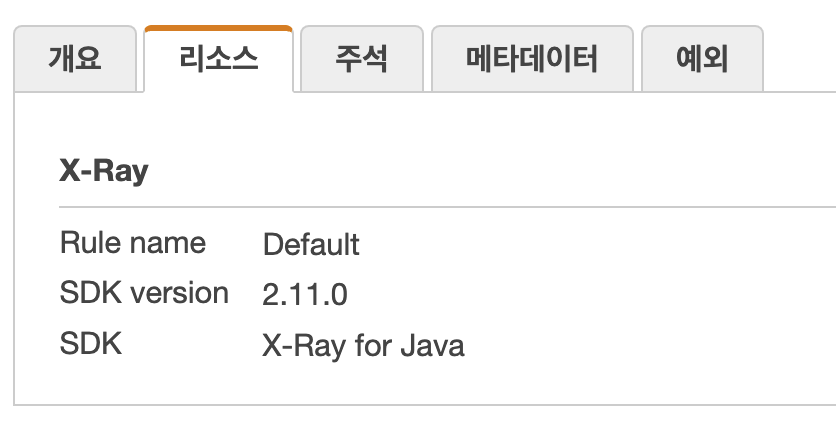 트레이스에서 세부 정보를 확인하면 subsegment가 외부 호출한 부분에 대한 정보만 추적을 하고 있고