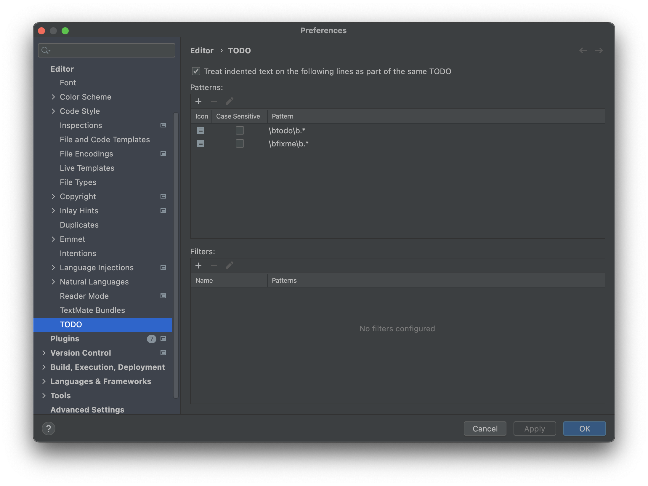 패턴으로 fixme 또는 todo 와 그 뒤에 오는 모든 글자는 강조가 됩니다.