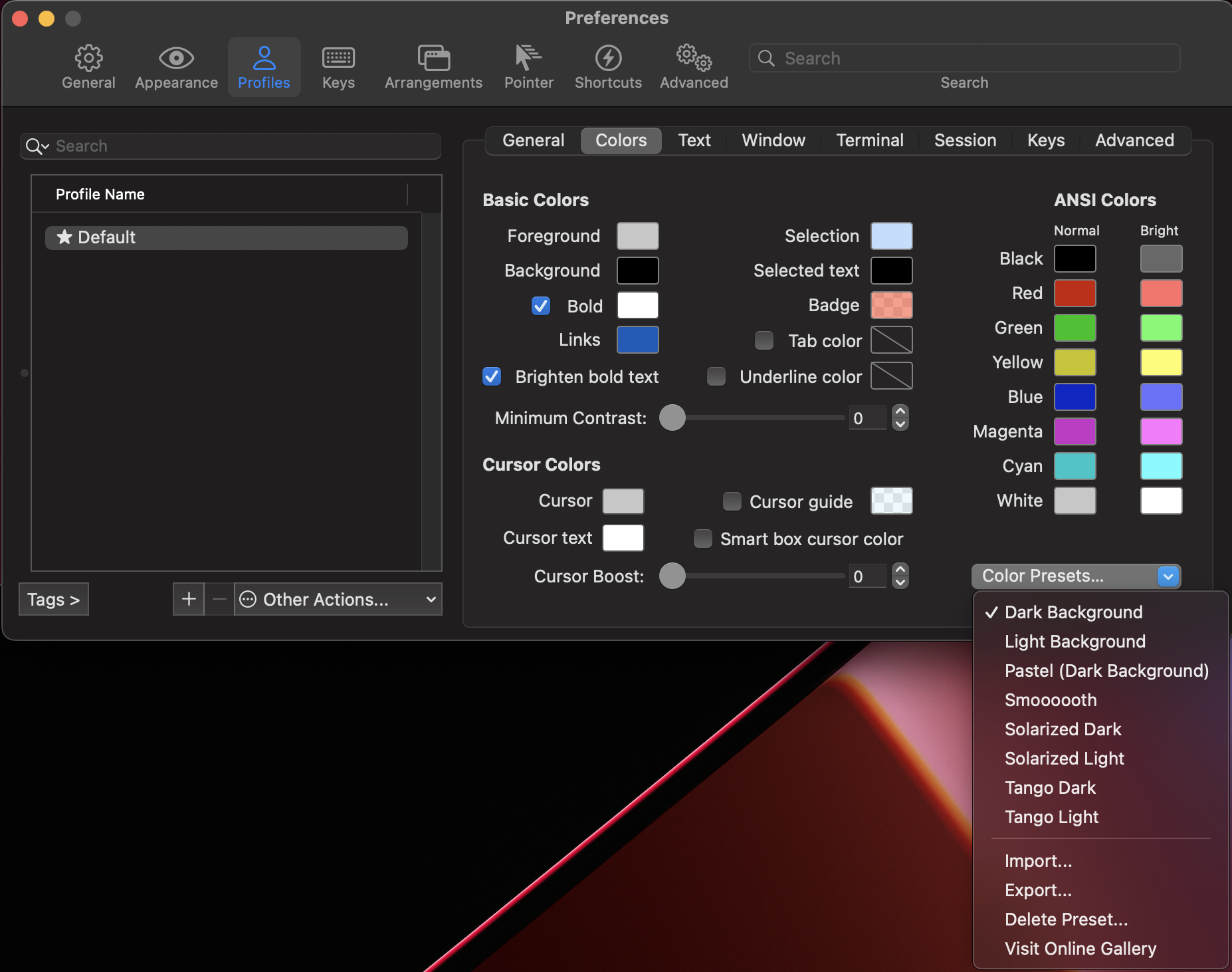 Preferences > Profiles > Colors에 Color Presets을 눌러 Import를 선택해서, 이전에 다운받은 theme에 있는 테마 파일을 선택하면 됩니다.