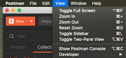 View > Show Postman Console 을 수행하면, 콘살창이 열린다.