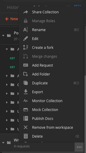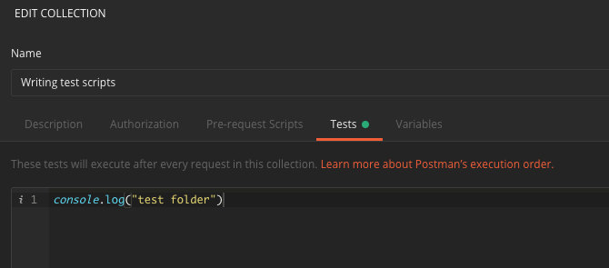 테스트 스크립트는 요청 뿐만 아니라, 각 폴더에도 적용이 가능하며 각 폴더의 테스트 스크립트는 해당 폴더의 하위에만 유효하다.